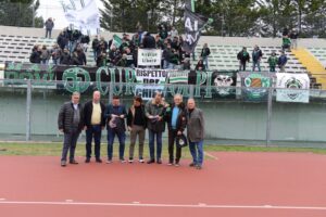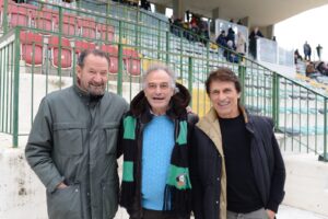 Sempre ieri il Comitato ha omaggiato quattro calciatori neroverdi del passato. Serie di amarcord iniziata il 23 gennaio prima dell’incontro Chieti-Recanatese e tenuta in vita da allora in tutte le partite interne della squadra. Ieri riconoscimenti (pergamena personalizzata, libro sui 100 anni, gagliardetto, cartolina con annullo filatelico) sono andati al portiere Massimo Di Carlo, ai difensori Giovannino Mattioli e Paolo Petrelli, e all’attaccante Alessio “Bobo” Rosa. Di Carlo (classe 1960), Mattioli /1958) e Petrelli (1960) hanno giocato insieme per tre stagioni, dal 1985-86 al 1987-88, vale a dire le prime (indimenticabili e irripetibili) legate al nome del patron Mario Mancaniello. Rosa, ascolano, 38 anni, ha indossato la maglia neroverde dal novembre 2008 al novembre 2011, eccellente il suo stato di servizio: 85 presenze e 33 gol. Applausi scroscianti e un po’ di commozione.