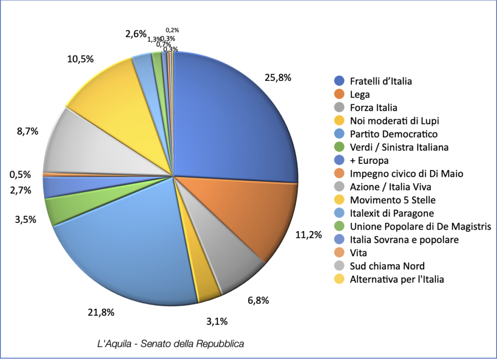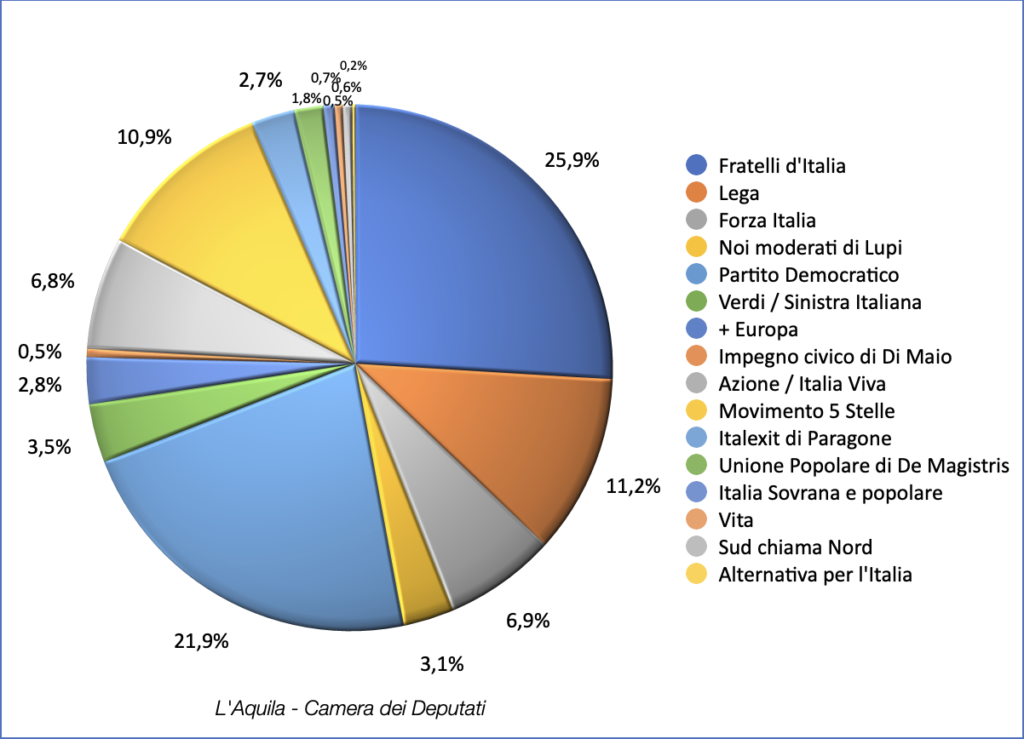 Nei due quesiti previsti dall’indagine è stato chiesto agli abruzzesi di esprimere la propria intenzione di voto in vista delle prossime elezioni politiche, in riferimento alla Camera dei Deputati e al Senato della Repubblica.