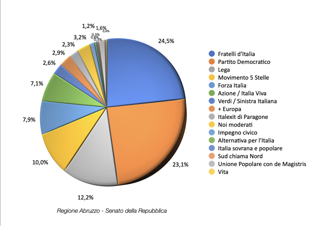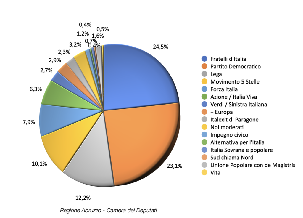 È stato pubblicato sul sito della Presidenza del Consiglio dei Ministri – Dipartimento per l’Informazione e l’Editoria – WWW.SONDAGGIPOLITICOELETTORALI.IT (http://www.sondaggipoliticoelettorali.it/ListaSondaggi.aspx) – l’esito del sondaggio sulle “Intenzioni di voto degli abruzzesi“, effettuato da G.D.C. Sondaggi con metodo di campionamento probabilistico e rilevazione CAWI, CATI e CAPI, nel periodi dal 25 al 28 agosto 2022.