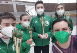 La compagine di spadisti teatini, infatti, ha conquistato l’oro in tutte e tre le categorie e un argento nella Spada Femminile. I quattro giovani moschettieri Teate Scherma, dunque, raggiungono il massimo piazzamento possibile nelle rispettive gare: un risultato che si somma a quello, altrettanto scintillante, dei Cadetti e Giovani di due settimane fa a Sulmona e che conferma l’ottimo lavoro svolto dagli atleti dell’Onda Verde in una stagione in crescendo.