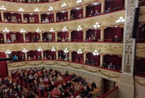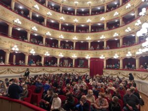 Il teatro comico d’autore debutta al Marrucino di Chieti con “Coppie felicemente infelici”, una commedia prodotta da Uao Spettacoli firmata da Claudio Insegno che guarda alle umane fragilità e proprio questo spettacolo in cui si prendono di mira le piccole insopportabili abitudini che minano l’amore è il primo appuntamento della divertente rassegna “Ride bene, chi ride al Marrucino” creata da Marco Iezzi e Federico Perrotta in collaborazione con il Teatro Marrucino. Parola d’ordine della domenica pomeriggio: divertimento; ed è proprio all’insegna della risata che il gioiello teatino è tornato a riempirsi di spettatori desiderosi di emozioni e come sottolinea lo stesso Marco Iezzi “è stato bellissimo percepire il sorriso negli occhi delle persone; nel vivere i diversi momenti di una commedia molto piacevole credo che in molti abbiano portato a casa una piccola analisi del sè questa sera. Sul palco un cast eccezionale: ringrazio Federico Perrotta per la divertente collaborazione, tutti coloro che lavorano alla buona riuscita di questi appuntamenti con lo spettacolo e lo stesso Teatro Marrucino; non posso non ringraziare il pubblico perchè non ha mai smesso di credere nello spettacolo dal vivo”. Ad animare la scena: Federico Perrotta e Valentina Olla che rafforzano il matrimonio artistico con Claudio Insegno e Sabrina Pellegrino, alla quale affidano anche la scrittura del progetto e gli attori Marco D’Angelo e Giulia Perini. Scene e costumi sono di Graziella Pera, il disegno luci di Marco Laudando; fonica a cura di Marco De Angelis. “Il secondo appuntamento con la rassegna che ci regala tante soddisfazioni prevede Ciao Signò, uno spettacolo divertente e ricco di sketch amatissimi del repertorio di Marco Marzocca, che andrà in scena al Teatro Marrucino il 19 dicembre alla stessa ora; l’occasione giusta per rivivere i suoi personaggi più famosi; presente anche la spalla artistica di Stefano Sarcinelli ed anche questa sarà una buona occasione per ridere insieme”- conclude Iezzi. Il divertimento ben si sposa con la beneficenza, infatti la rassegna “Ride bene chi ride al Marrucino” gode dell’appoggio di tutti i club Kiwanis della Divisione 11 Abruzzo – Puglia per la raccolta fondi in favore dell’Anffas di Chieti.