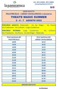 Gli organizzatori consigliano di utilizzare il bus navetta gratuito della Panoramica che partirà dal Palatricalle “Sandro Leombroni” con arrivo in Largo Cavallerizza dietro il Tribunale. Le corse ci saranno ogni mezz’ora dalle ore 18 fino alle ore 02 di notte.