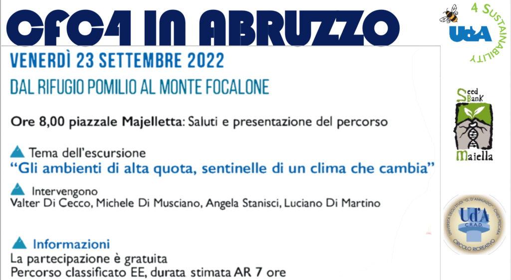 Venerdì 23 settembre, sul massiccio della Majella, ed in particolare sul percorso che dal Rifugio Pomilio, sulla Majelletta porta al Monte Focalone, i rappresentanti degli atenei abruzzesi nella RUS, si incontreranno per una esperienza diretta di verifica degli effetti del cambiamento climatico sulla fragile consistenza dell’ambiente montano. Ed in particolare con gli interventi tecnici coordinati dal Direttore del Parco della Majella, Dottor Luciano Di Martino, si discuterà delle piante di alta quota, di quelle specie che per la limitata distribuzione e la caparbia capacità di sopravvivere in ambienti ostili risultano peculiari delle montagne Abruzzesi.