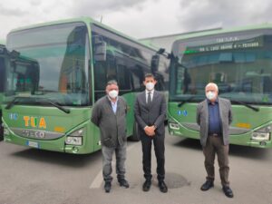 Si arricchisce il parco veicoli di TUA, azienda regionale di trasporto della Regione Abruzzo, che da oggi può immettere in servizio dieci nuovi autobus Iveco Crossway. I nuovi mezzi potenziano la flotta aziendale composta da oltre 800 mezzi. I bus, prodotti dalla Iveco e di tipo Crossway Low Entry Line E6 da 12,05 metri di lunghezza, oltre a contribuire ad un rinnovamento generale del parco gomma aziendale, presentano caratteristiche tecnologiche di rilievo quali la conformità alla direttiva EURO 6 step D e presentano una serie di tecnologie all’avanguardia.I Crossway della TUA, infatti, che saranno da subito destinati ai servizi di trasporto pubblico gestiti dalle sedi TUA dislocate su tutto il territorio regionale, sono dotati di emettitrici/validatrici di titoli di viaggio, di POS per la bigliettazione con carte di credito, di un sistema conta-passeggeri alle porte, del sistema TVCC di controllo retromarcia (telecamera esterna) e porta posteriore (telecamera interna) con monitor sul cruscotto del conducente e di un computer e rete telematica di bordo per l’interfacciamento in tempo reale con la centrale operativa, impianti di climatizzazione con regolazione automatica e separata tra zona passeggeri e posta guida, la cui portata consente il completo ricambio d’aria nell’abitacolo ogni 1 minuto circa. I nuovi Iveco presentano, tra l’altro, l’impianto di spegnimento automatico degli incendi nel vano motore ad acqua nebulizzata e sistemi elettronici di sicurezza della frenata e della stabilità in marcia del veicolo. “Prosegue la sostanziosa opera di ammodernamento della nostra flotta – spiega il presidente di TUA, Gianfranco Giuliante – un percorso che stiamo portando convintamente avanti con lo sguardo ben orientato all’ambiente e agli impatti aziendali dei mezzi. I nuovi autobus – spiega Gianfranco Giuliante – ci offrono la possibilità di gestire ancora più efficacemente il complesso processo di trasporti legato alla riapertura delle scuole. Infatti – continua Giuliante – siamo in grado di mettere a disposizione mezzi di ultimissima generazione dotate di tutte le tecnologie tra le quali gli impianti di climatizzazione con regolazione automatica e separata tra la zona passeggeri ed il posto guida con un completo ricambio d’aria nell’abitacolo ogni minuto. In una fase estremamente complessa e in divenire – conclude Giuliante – TUA sta cercando di interpretare al meglio le complesse dinamiche che sottendono a questa delicatissima fase del trasporto”.