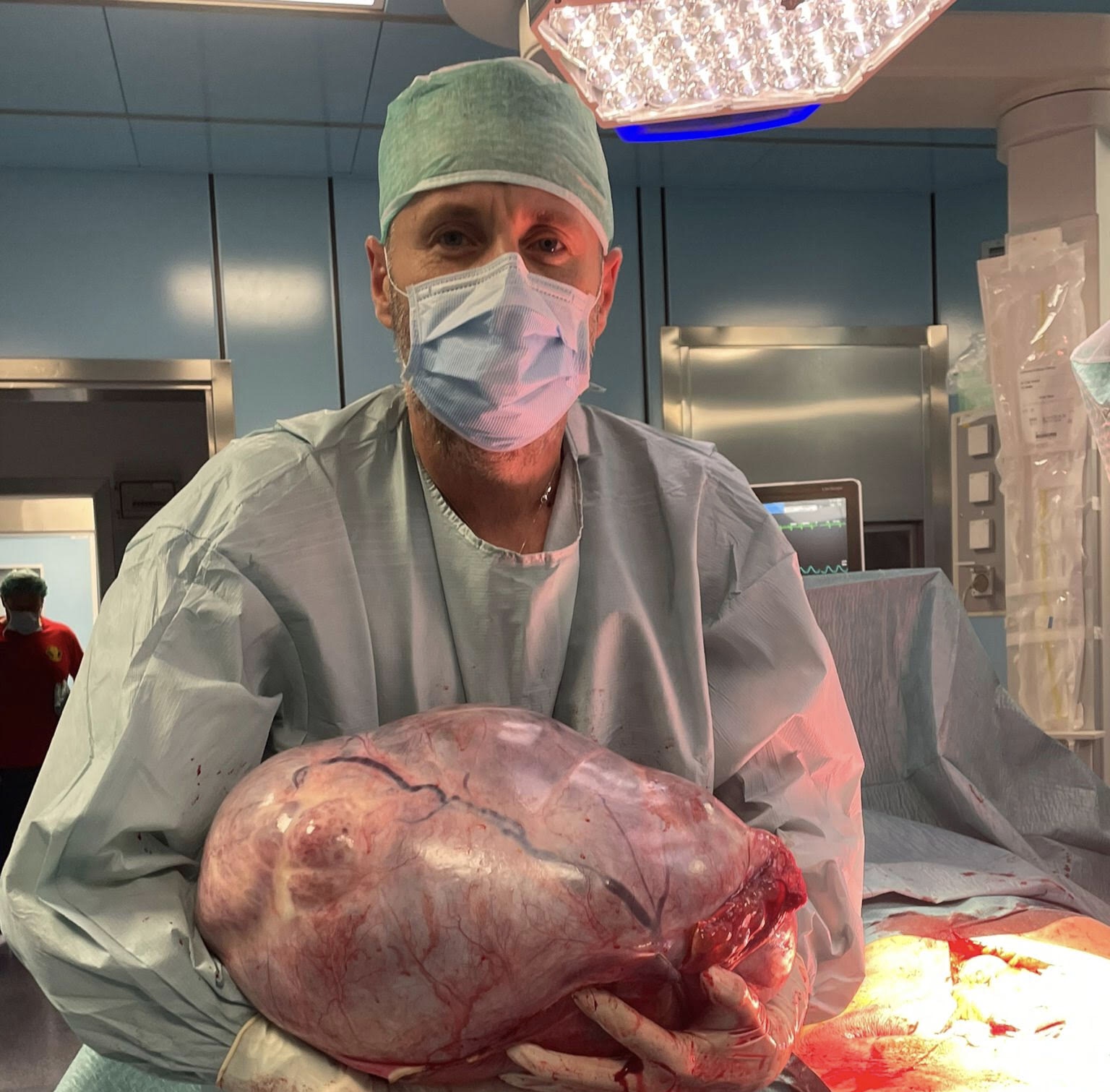 Non si spiegava un aumento esagerato delle dimensioni dell’addome, finché in preda a dolori lancinanti una 75enne residente nel Chietino si è recata in Pronto soccorso al “SS. Annunziata” dove gli esami radiologici hanno evidenziato la presenza di una massa nella zona pelvica. Ma il volume e il peso sono stati evidenti solo sul tavolo operatorio, quando il ginecologo Alessandro Lucidi e la sua équipe sono rimasti sbalorditi alla vista dell’enorme neoformazione da dover rimuovere, dal peso di quasi 30 chilogrammi. “Dire che si è trattato di un caso eccezionale è perfino riduttivo – racconta Lucidi, che vanta una lunga esperienza nella chirurgia ginecologica, specie oncologica, maturata al Gemelli e in altri ospedali che fanno scuola in tale specialità -. Un volume così non si era mai visto e proprio per questo siamo stati costretti a seguire l’approccio chirurgico tradizionale, a cielo aperto, mentre abitualmente in oncologia utilizziamo la tecnica mini invasiva con il robot da Vinci. E anche la difficoltà dell’intervento è stata determinata dalla grandezza della massa, che limitava i movimenti e rendeva difficoltoso ripristinare l’integrità di vasi e tessuti. Con la massa abbiamo asportato utero e ovaie, oltre ai campioni istologici necessari per la stadiazione del tumore. La paziente, nata in un Paese dell’Unione europea ma residente in provincia di Chieti, sta bene e resterà ricoverata ancora qualche giorno, vista la portata dell’intervento subito. Spetterà ora ai patologi identificare il tipo di neoplasia al fine di stabilire il percorso successivo”. Un caso, dunque, straordinario per la Clinica Ostetrico Ginecologica del” SS Annunziata” che ha investito molto negli ultimi anni sulla chirurgia oncologica, strutturando una presa in carico vera delle donne colpite da neoplasia dell’utero che sempre più numerose scelgono di affidarsi alle cure dell’équipe diretta da Marco Liberati. Quest’anno sono state 53 quelle sottoposte a intervento con il robot “da Vinci Xi”, un approccio che rappresenta la nuova frontiera della chirurgia mini invasiva: “In questa circostanza non era indicato ma in generale abbiamo puntato molto su questa tecnologia – tiene a specificare ancora Alessandro Lucidi, a cui è stata affidata la responsabilità della Chirurgia ginecologica – che amplifica e ottimizza la visione e consente un’osservazione più precisa, tridimensionale, con un’immersione totale nel campo operatorio. Nelle pazienti obese soprattutto è possibile arrivare in aree non sempre facilmente raggiungibili in sicurezza attraverso i canali tradizionali. Ma i vantaggi sono apprezzabili facilmente anche dalle stesse donne, perché il robot consente di eseguire procedure complesse grazie a piccole incisioni sull’addome, riducendo il trauma dei tessuti, il dolore post operatorio, il sanguinamento e la necessità di trasfusioni di sangue. Senza trascurare la degenza più breve. In campo oncologico, per le neoplasie endometriali, comunemente chiamate tumori uterini, permette di effettuare anche una corretta stadiazione chirurgica attraverso l’identificazione del linfonodo sentinella grazie all’utilizzo della fluorescenza”. Il tumore dell’endometrio è uno dei più diffusi nelle donne, dopo mammella e polmone, complice lo stile di vita dei Paesi Occidentali che favorisce l’obesità, uno dei fattori di rischio principali. L’equipe della Ginecologia ed Ostetricia di Chieti ha nell’ultimo anno diagnosticato e trattato oltre 60 casi di carcinoma endometriale grazie al supporto degli ambulatori di Isteroscopia dei presidi ospedalieri di Ortona e Chieti, gestiti da Donata Pizzigallo e Ettore Clementini, ma soprattutto grazie alla gestione multidisciplinare che ha coinvolto ginecologi, radioterapisti, anatomopatologi e anestesisti. Tale attività ha permesso al centro di acquisire tutti gli indicatori richiesti dalla società europea di Ginecologia Oncologica (ESGO) per il conferimento della certificazione quale Centro di riferimento per la chirurgia del carcinoma Endometriale. “A fare la qualità dell’assistenza alle donne con tale patologia ginecologico-oncologica è il percorso multidisciplinare – conclude Lucidi – con consulti periodici fra i vari specialisti interessati. E’, inoltre fondamentale, che il percorso preveda una presa in carico del paziente dalla diagnosi al trattamento fino al follow-up mettendo, quindi, a disposizione all’interno della struttura stessa tutte le prestazioni e i servizi necessari per la rilevazione e il trattamento di eventuali recidive”. Le donne sottoposte a intervento per neoplasie a Chieti sono assistite dal personale dedicato al percorso chirurgico e ricoverate in un’ area ad esse dedicata, con assistenza continuativa da parte del personale ostetrico; è consentita la permanenza dei familiari, gradita in un momento particolarmente delicato per la vita della donne.