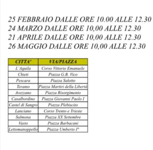 Ad essere presenti alla manifestazione in qualità di membri del “Tavolo Affido”, oltre agli avvocati citati, il dottor Andrea Menna, Giudice del Tribunale ecclesiastico di Chieti insieme a i seguenti volontari: l’avvocato Stefano Marchionno, lo studente del Liceo Classico G.B.Vico Pietro Di Renzo e l’imprenditrice Daniela Di Zio. In allegato le prossime date con relativo orario e città partecipanti.