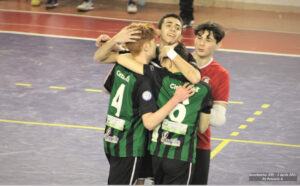 Il Città di Chieti si regala una bella Pasqua vincendo una partita sempre avuta in pugno ma che, sia per la foga di concludere e sia per la giornata di grazia del portiere sannita, è rimasta in equilibrio fino a metà della ripresa. Da registrare due novità in formazione: si rivede Monte che torna a fare parte della coppia di portieri dopo lo stop forzato per infortunio e soprattutto c’è l’esordio di Del Grosso, un altro talento anno 2005 prodotto dal vivaio neroverde. Veniamo al film della partita: il Città di Chieti parte forte e nei primi minuti ci sono subito tre ghiotte occasioni che non vengono capitalizzate dai ragazzi teatini, mentre da palla inattiva nasce il vantaggio ospite: tiro da fuori area, Mincarini (altro talento 2005) vede sbucare all’ultimo il pallone e non può nulla, altrimenti il bravo Giulio nel primo tempo è più che altro uno spettatore aggiunto. Ci pensa Onnembo a realizzare l’1-1, una rete di pregevole fattura: scavalca l’avversario sulla fascia con un lob bellissimo e poi di sinistro gonfia la rete con un diagonale preciso e potente. Galvanizzati dal pari, i neroverdi costruiscono senza però capitalizzare altre due occasioni con Blasioli e Di Paolo, che vedono negarsi la gioia del goal da un superlativo portiere ospite. Ad inizio secondo tempo, i teatini partono nuovamente forte e arrivano al meritato vantaggio con il m.o.m. Caporale: ennesimo pallone rubato in mediana e Onnembo lancia il 6 neroverde che a tu per tu col portiere non sbaglia. Un’altra disattenzione difensiva del Città di Chieti consente il nuovo pari al Venafro… ma di qui inizia la sinfonia neroverde con Marcuccitti – strepitoso uomo assist – e soprattutto Blasioli, sontuoso 2004 già col piglio del veterano, con quest’ultimo bravo a realizzare una doppietta che vale il 4-2 finale: il primo gol è tutto merito del buon Silvio grazie ad un pallone recuperato e successivo assist di tacco per Blasioli rimasto solo in area per il comodo tap in; la seconda rete è tutta astuzia, tiro di punta da fuori area preciso al palo, bellissimo (sono 6 i gol realizzati da Blasioli, capocannoniere della banda del duo Farinacci-Nucilli). Applausi per tutti al fischio finale soprattutto per i tanti progressi fatti vedere ed anche per il grande lavoro di crescita verso i tanti fuoriquota della canterà neroverde. Con questa vittoria il Città di Chieti si regala una serena Pasqua e soprattutto consolida il terzo posto a quota 9 punti. Ora subito testa a domenica prossima per la sfida al PalaDevils di Bucchianico contro la capolista Junior Domitia