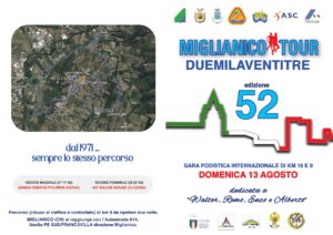 Grandi campioni annoverati nell’albo d’oro tra vincenti e piazzati di lusso (Orlando Pizzolato, Gianni Poli, Salvatore Bettiol, Giorgio Calcaterra, Giacomo Leone, Alberico Di Cecco, Camillo Campitelli, Andrew Masai, Anna Incerti, Laura Fogli e Franca Fiacconi, solo per citarne alcuni e/o alcune), un tracciato tecnicamente all’altezza (che ruota attorno a Miglianico tra discesa, pianura e salita con i due giri per la 18 chilometri e una sola tornata per la 9 chilometri), un’organizzazione ad hoc da oltre mezzo secolo: la Miglianico Tour si ripropone ogni anno ad agosto come uno degli eventi più prestigiosi e più seguiti in tutto lo sport abruzzese e non solo.