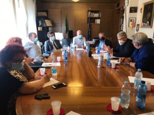 Nuova sinergia per il prosieguo della campagna vaccinale in città, quella scaturita dall’incontro tenutosi stamane in Comune fra l’Amministrazione e i vertici della Asl. Presenti il sindaco Diego Ferrara e il manager Thomas Schael, alla riunione hanno partecipato anche il Presidente del Consiglio Comunale Luigi Febo, l’assessore alla Sanità Giancarlo Cascini, la presidente della Commissione sanità Gabriella Ianiro e il consigliere delegato alla Protezione civile Vincenzo Ginefra, oltre ai funzionari della Asl 2. “Dobbiamo procedere in modo deciso e serrato con la campagna, per arrivare alla vaccinazione delle almeno 15.000 persone che in città ancora non hanno aderito – dicono il sindaco Diego Ferrara e il manager Thomas Schael – Al fine di risolvere le problematiche legate alle sedi vaccinali, si procederà su due fronti: il primo sarà quello di attivare al più presto un hub nei locali del Foro Boario in sinergia con la Camera di Commercio; l’altro riguarda l’attivazione del Pala Colle dell’Ara nei tempi tecnici utili alla sistemazione dell’impianto e della struttura. Le due soluzioni viaggiano in parallelo, nell’intesa che a fine ottobre il Foro Boario torni nelle disponibilità della Camera di Commercio, come l’ente camerale ci chiede e Colle dell’Ara resti come unico punto vaccinale dello Scalo.I dati relativi alla città di Chieti destano qualche preoccupazione circa i nuovi contagi e impongono, pertanto, responsabilità da parte di tutti nei comportamenti e un’accelerazione dei vaccini, anche al fine di evitare future restrizioni e il ritorno del territorio in zone di allarme e contingentamento. Lavoreremo insieme perché la situazion non torni ad essere critica, sensibilizzando chi non ha ancora fatto il vaccino affinché lo faccia al più presto, con un occhio particolare ai giovani e ai giovanissimi, ai quali rivolgeremo la nostra prioritaria attenzione, affinché il peso della mancanza di prevenzione non torni a condizionare l’andamento dell’anno scolastico. Sulla piattaforma Poste è disponibile un’ampia offerta di posti prenotabili, che facilitano notevolmente l’accesso alla vaccinazione, senza attese”.