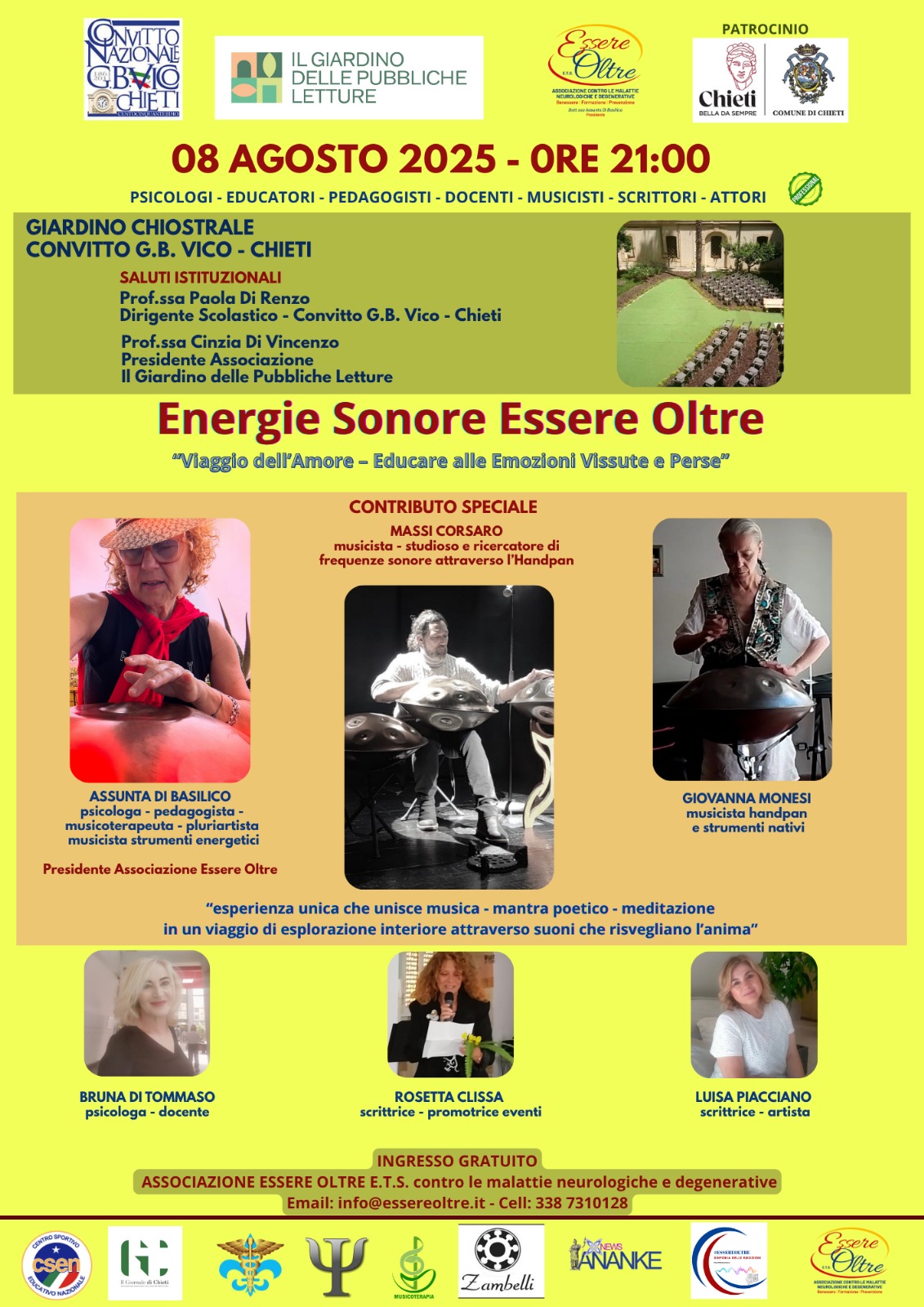 Dialogheranno la Dott.ssa Assunta Di Basilico e il Prof. Daniele Rossi, docente e giornalista, che offrirà un approfondimento sul valore educativo e sociale del progetto, evidenziando l’urgenza di introdurre l’educazione emotiva e sonora nella formazione scolastica e nei contesti di cura.