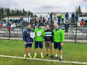 Prima del via il presidente del Comitato per il Centenario del Chieti, Stefano Marchionno, ha donato a Vincenzo Vivarini, allenatore del Catanzaro, il libro sul Secolo Neroverde, il gagliardetto celebrativo dei 100 anni e la cartolina recante l’annullo filatelico. Il tecnico, originario di Ari, non ha nascosto la propria commozione nello sfogliare per qualche istante le pagine del volume, soprattutto quelle che lo riguardano. Vivarini, infatti, ha allenato il Chieti nel 2009/2010 vincendo il campionato di serie D e nella stagione successiva conquistò un bel sesto posto in seconda Divisione Lega Pro. Grande allenatore e grande persona, conserva la stima e l’affetto di tutti i tifosi neroverdi.